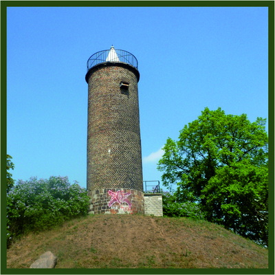 .... wurde 1881 auf Initiative des Markwerbener Landwirts Christian Friedrich Berger (4.4.1818 –23.4.1904) errichtet. Berger finanzierte mit großer Wahrscheinlichkeit den Bau, nachweislich kaufte Berger aber das Grundstück der Gemeinde ab. Der Turm steht auf dem sogenannten „Glatten oder Sängerhügel“, man vermutet, dass es sich hierbei um einen vorgeschichtlichen Grabhügel handelt. Der Aussichtsturm hat eine Höhe von 14,50 m, einen Durchmesser von 4 m und eine Mauerstärke von 0,65 m. | |