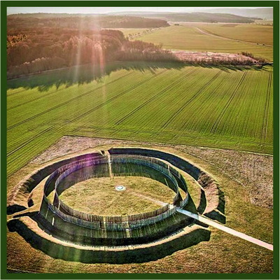 …ist eine jungsteinzeitliche Kreisgrabenanlage am nordwestlichen Ortsrand von Goseck im Burgenlandkreis. Die ringförmigen Bodenverfärbungen wurden 1991 bei einem Erkundungsflug durch einen Luftbildarchäologen entdeckt und als neues Bodendenkmal gemeldet. Sie liegt auf einem Plateau oberhalb des Saaletals und besteht aus einem annähernd kreisförmigen Ringgraben mit etwa 71m Durchmesser. Als hölzernes Henge-Monument ist die Anlage rund 2000 Jahre älter als Stonehenge. | |