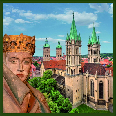 Der Naumburger Dom ist eines der bedeutendsten Kulturdenkmäler des europäischen Hochmittelalters, weltweit einzigartig sind seine Architektur, die Glasmalerei und die Bildhauerkunst. Das bestätigte das UNESCO-Welterbekomitee im Juni 2018 und erklärte den Dom zum Welterbe der Menschheit. Der berühmte Westchor entstand in der zweiten Hälfte des 13. Jahrhunderts und ist mit dem West-Lettner und den Stifterfiguren aus der Werkstatt des Naumburger Meisters eines der wichtigsten Bauwerke der Frühgotik. | |