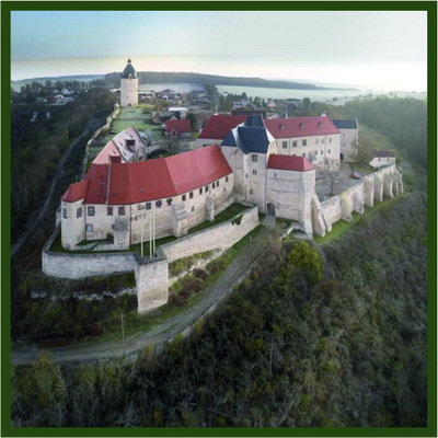 Die größte und älteste Burg an der Straße der Romanik wurde urkundlich erstmals im Hersfelder Zehntverzeichnis 866-899 erwähnt, jedoch dürften ihre Ursprünge noch viel weiter zurückreichen. Seit dem 10. Jh. hatte das einflussreiche, mit dem sächsischen Kaiser verwandte Adelsgeschlecht der Edlen Herren von Querfurt hier seinen Stammsitz. Von 1663-1815 existiert hier ein reichsunmittelbares Fürstentum Sachsen-Querfurt und diente den Herzögen von Sachsen-Weißenfels als Teilresidenz. | |