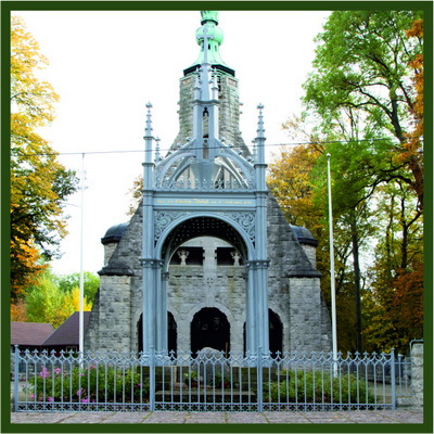 Wie das 2024 neu eröffnete "Museum Lützen 1632" erinnert auch die Gustav-Adolf-Gedenkstätte an die „Schlacht bei Lützen“. Doch während das Museum den namenlosen Opfern von Krieg und Gewalt der Novemberschlacht gewidmet ist, gedenkt man auf dem Kapellenareal den Tod des Schwedenkönigs. Der aufgestellte Gedenkstein wurde 1837 mit einen von Karl Friedrich Schinkel gestalteten Baldachin umgeben und bildet heute das Gustav-Adolf-Denkmal. | |